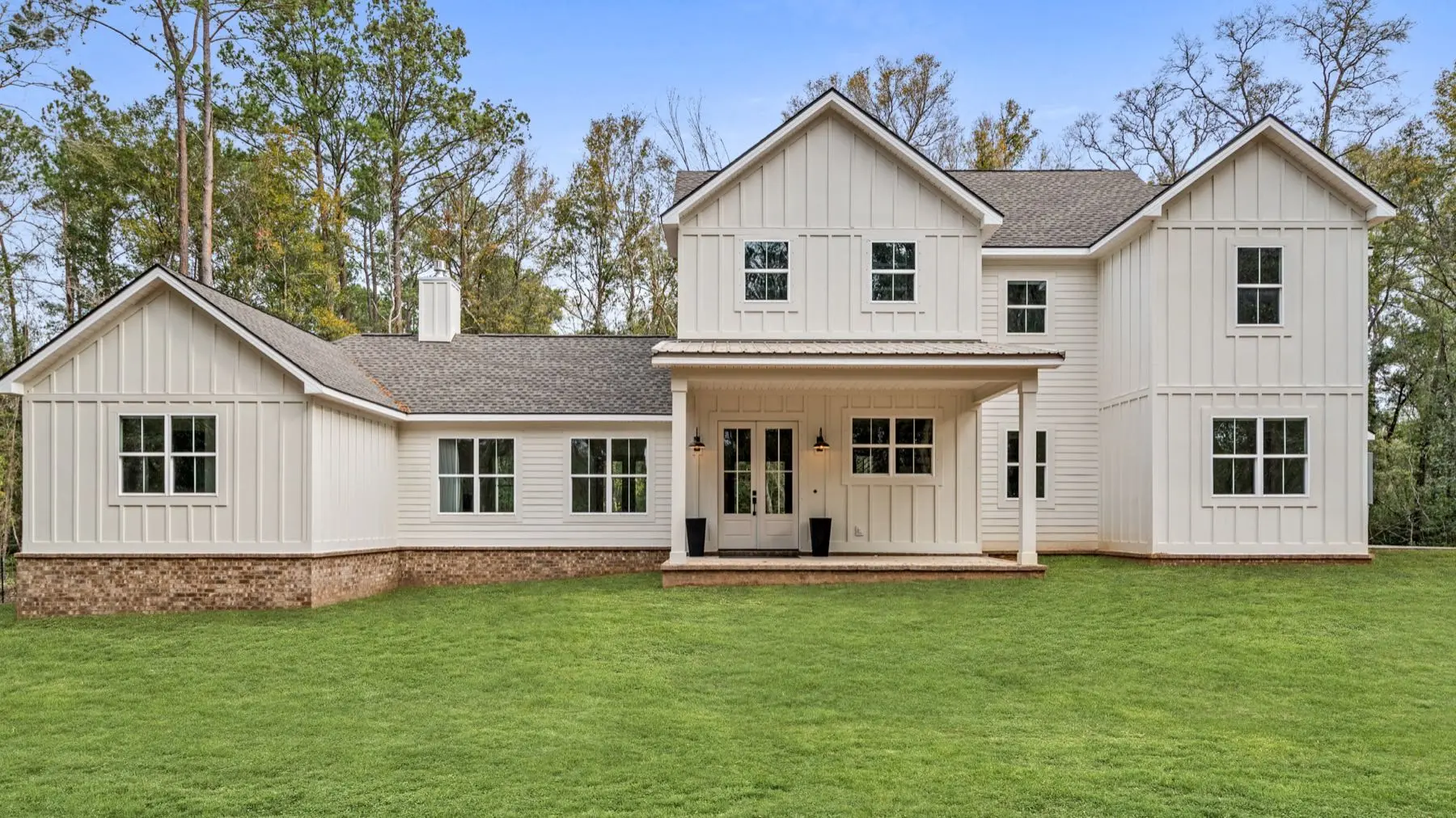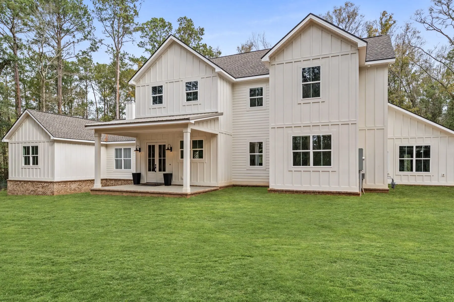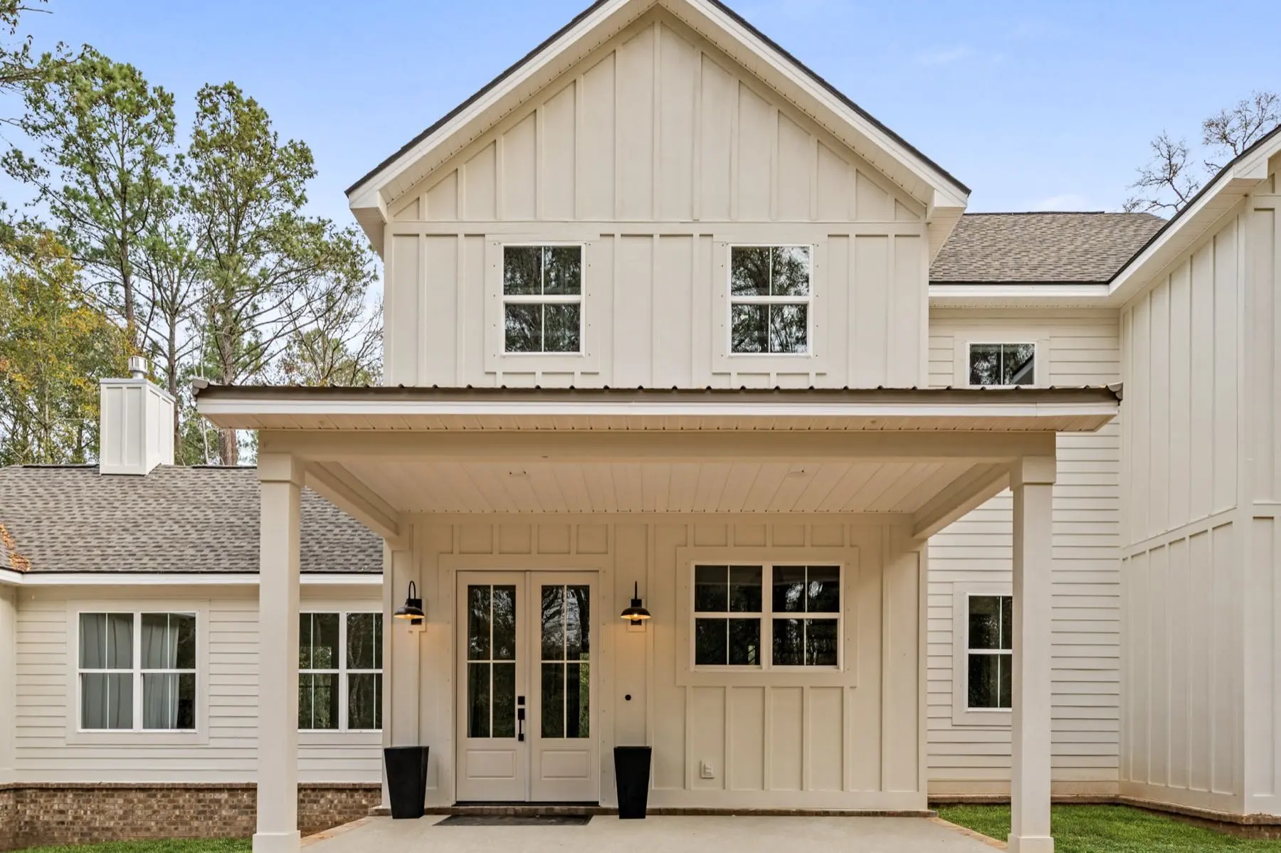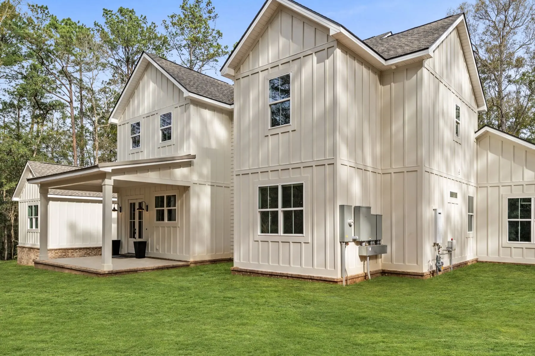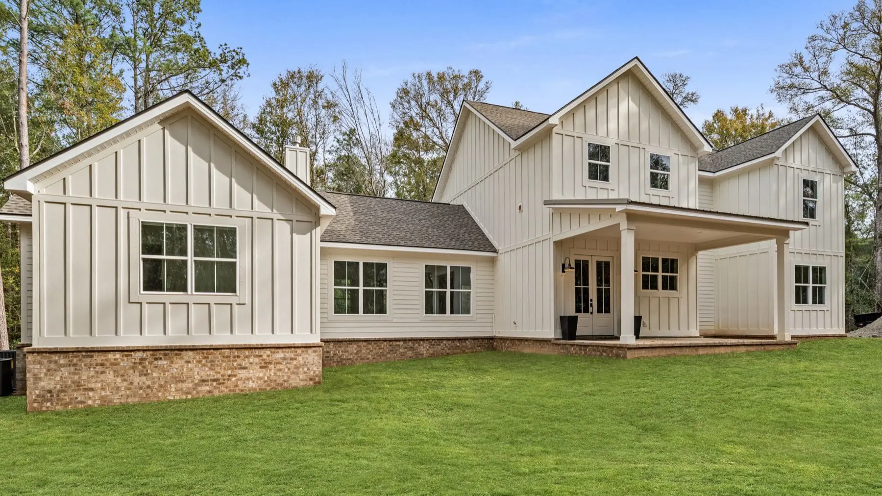 Exterior Features: Board and batten with brick skirt. Shingle/Metal roof. Covered front/rear porches.