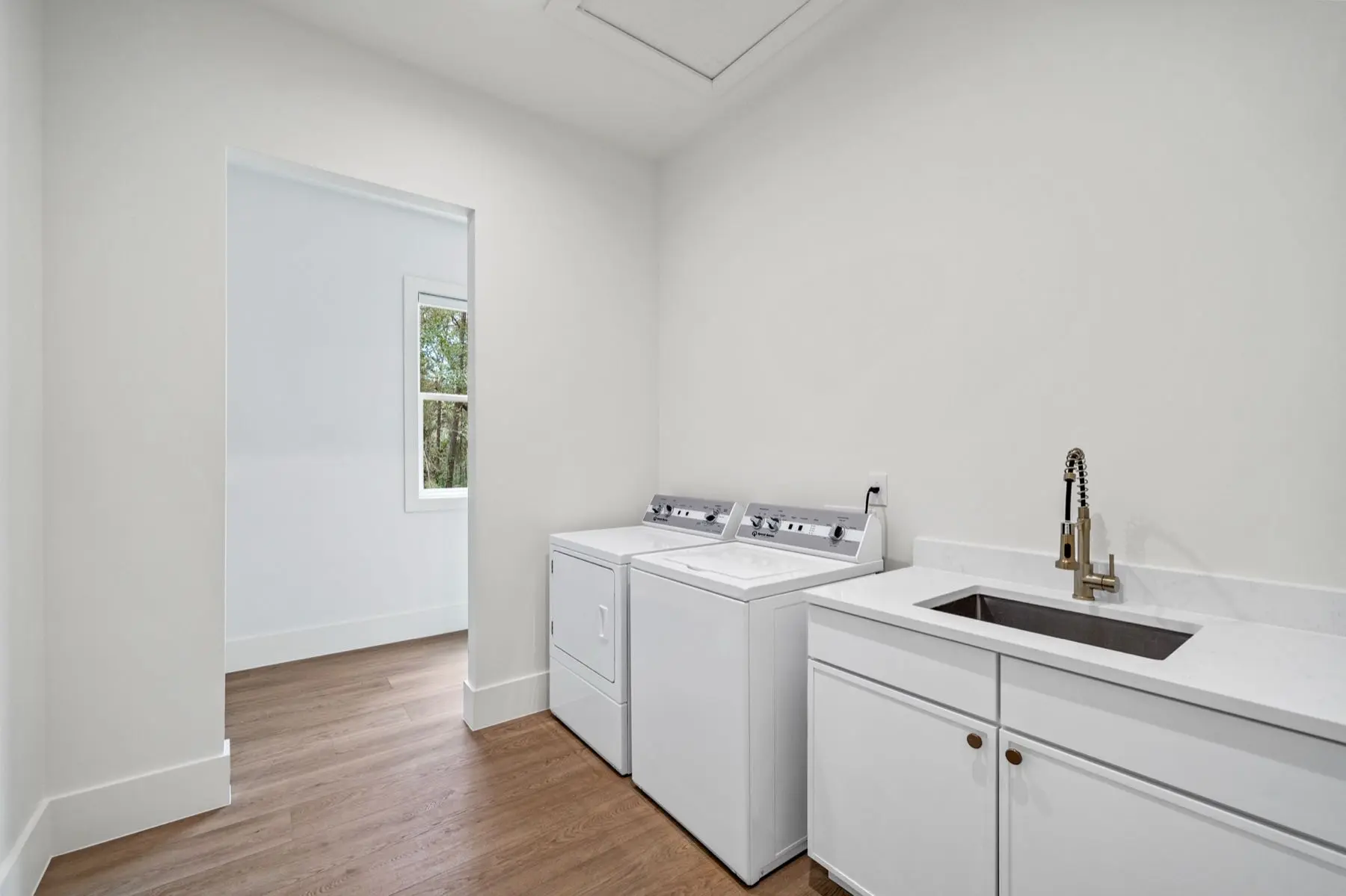 Appliances: Gas range, drawer microwave, refrigerator, washer and dryer.